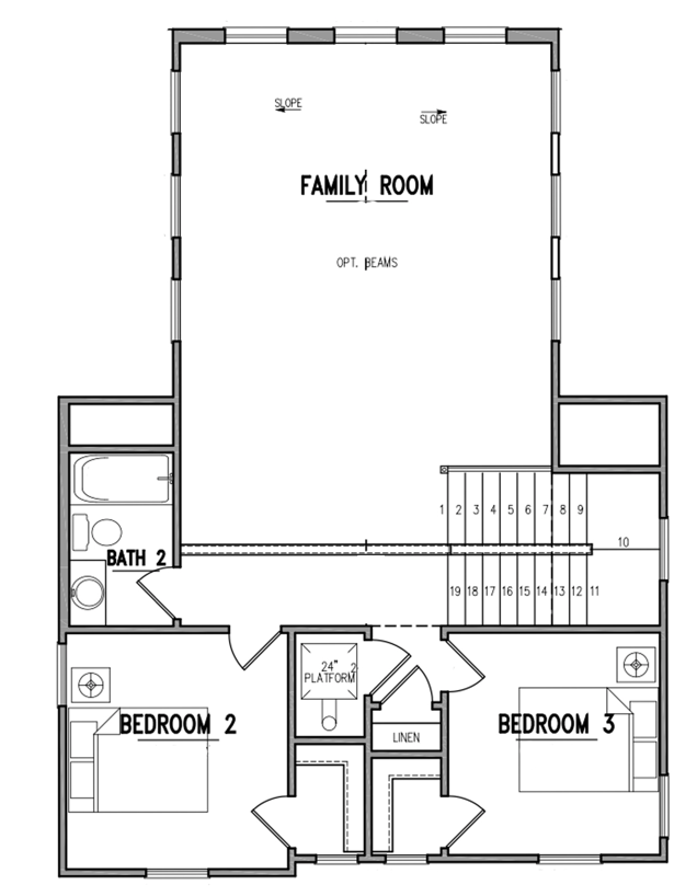 The Nassau is a comfortable 2,890 sq ft home featuring a layout designed for both comfortable living and entertaining. The first floor hosts the primary suite, while the second floor is dedicated to a spacious family room and two additional bedrooms – ideal for accommodating guests or creating separate living zones within a large family. This home is also complemented by a convenient detached two-car garage. Inspired by classic coastal architecture, the Nassau exudes timeless elegance with its light blue siding, red roof, and inviting porches.